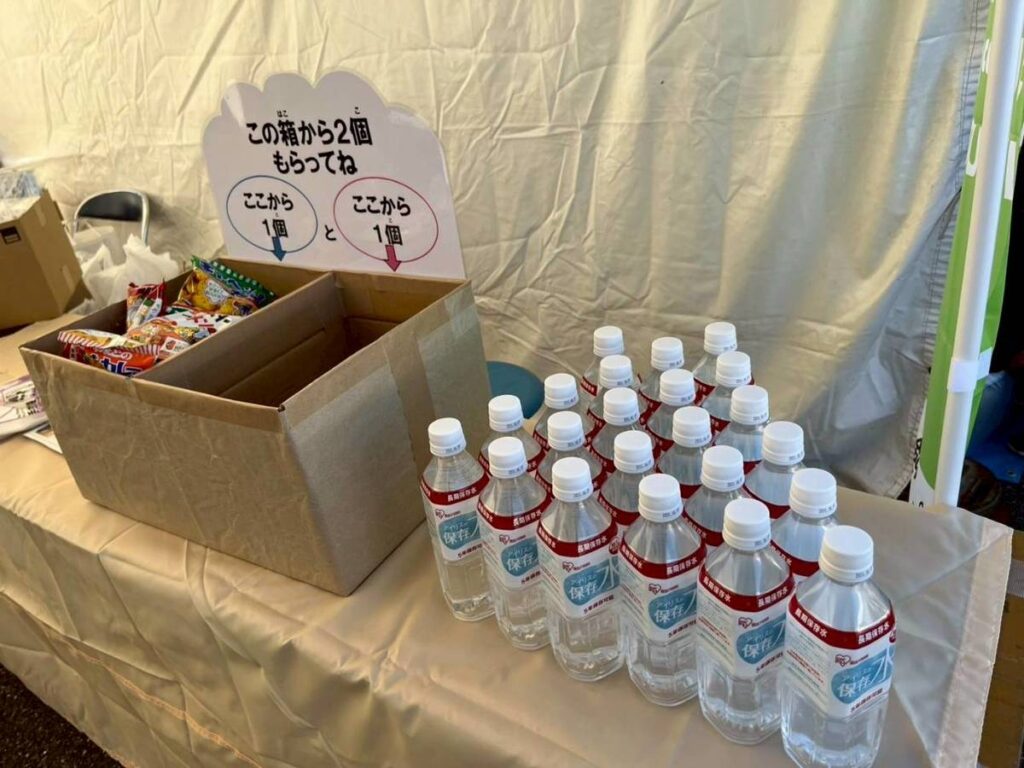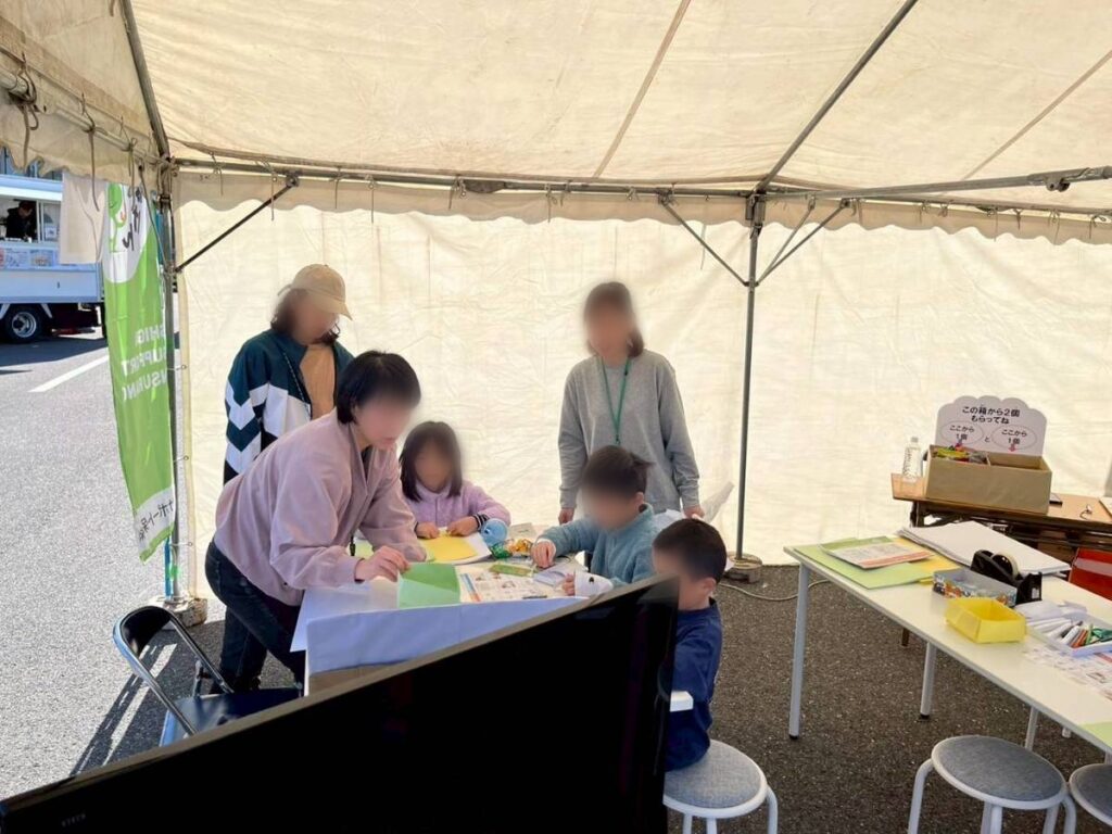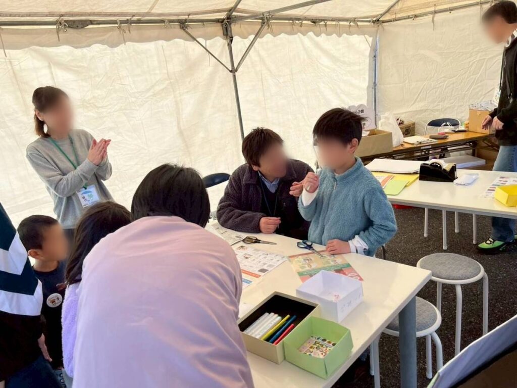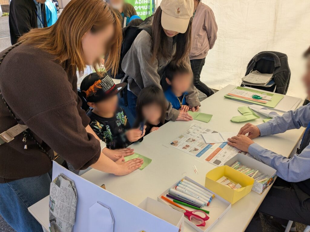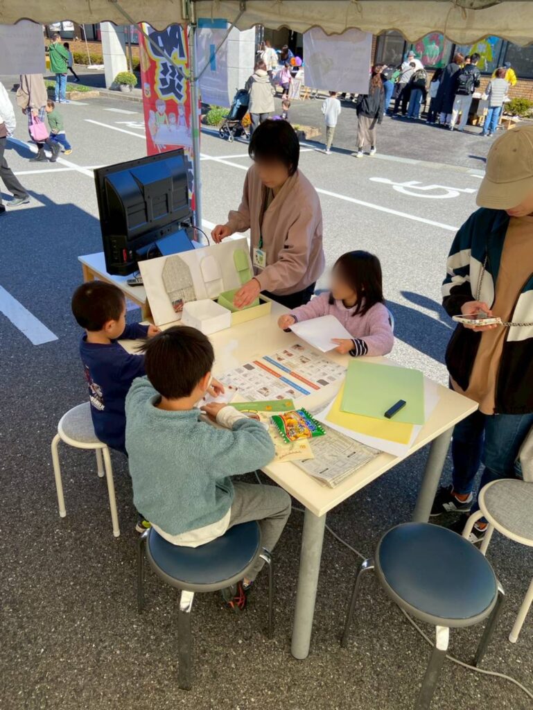 11月16日、地域の皆さまとともに「蒲生いきいきあかねフェア」に出店し、防災をテーマにしたワークショップを開催しました。今回は、新聞紙でつくる『スリッパ』と、ストローとハサミでつくる『ホイッスル』の2つの工作体験をご用意。子どもからご年配の方まで、幅広い世代の方々が参加してくださいました。